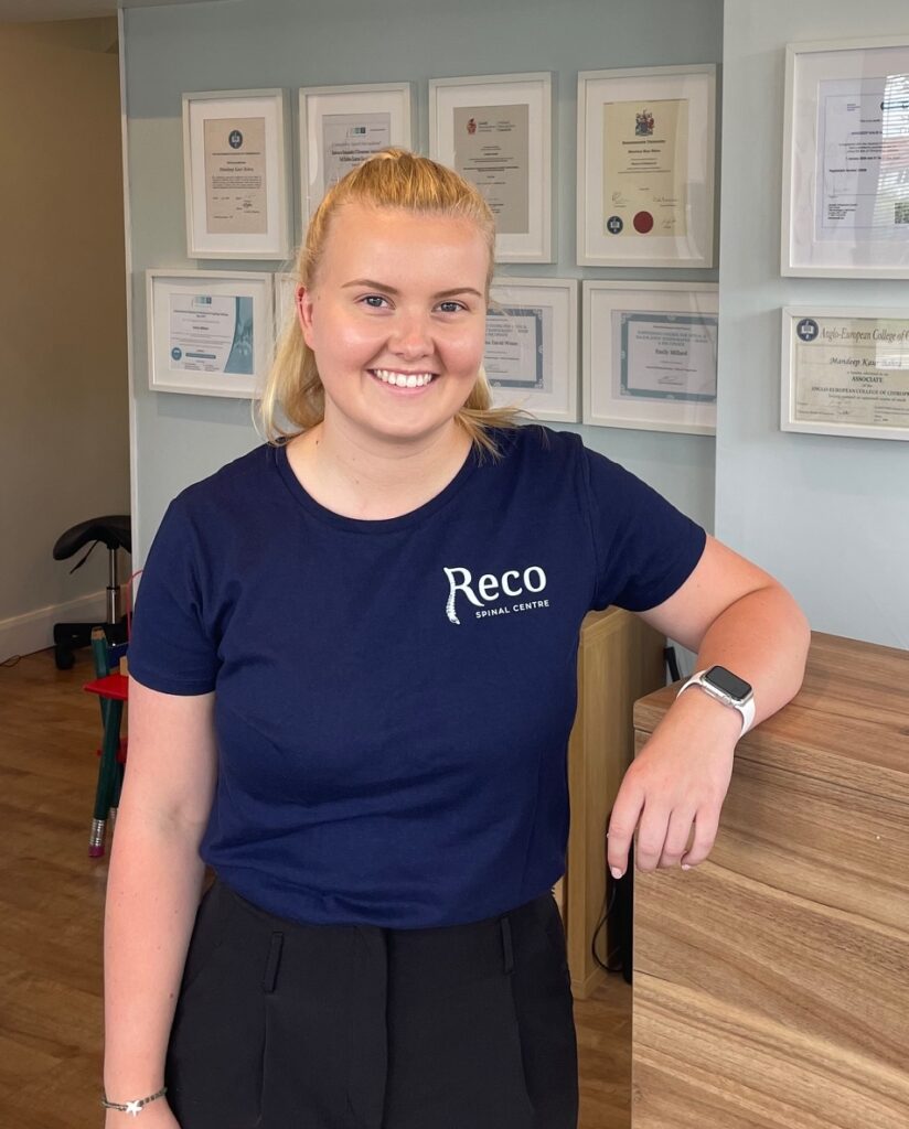 I’m Emily and I am a Spinal Therapist and Massage Therapist here at Reco Spinal Centre. In July 2022 | graduated from the University of South Wales with a degree in Sport and Exercise Science. I have undertaken multiple courses and have had first-hand training and guidance from our principle director / chiropractor Mandeep Marway and certified in Manipulation with Osteopathic manipulation training (OMT) , I also have trained in The Activator Protocol, spinal manipulation, and mobilisations. Alongside this I have also completed courses and training that enable me to perform deep tissue massage.